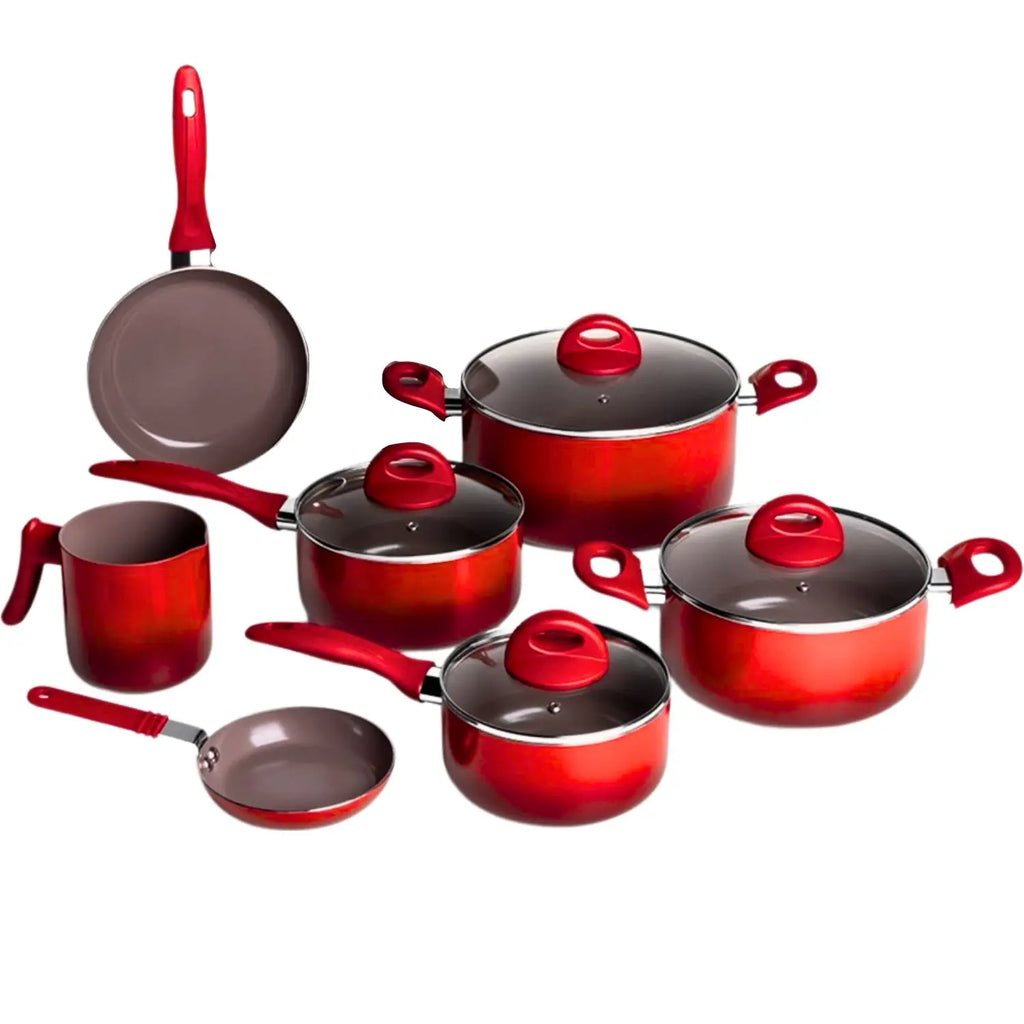 Know of Pans 7 Pieces Milano Soft Touch Red Quality House QH-401