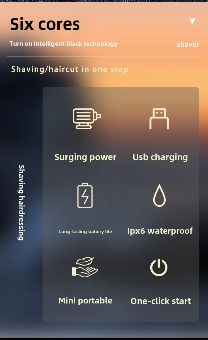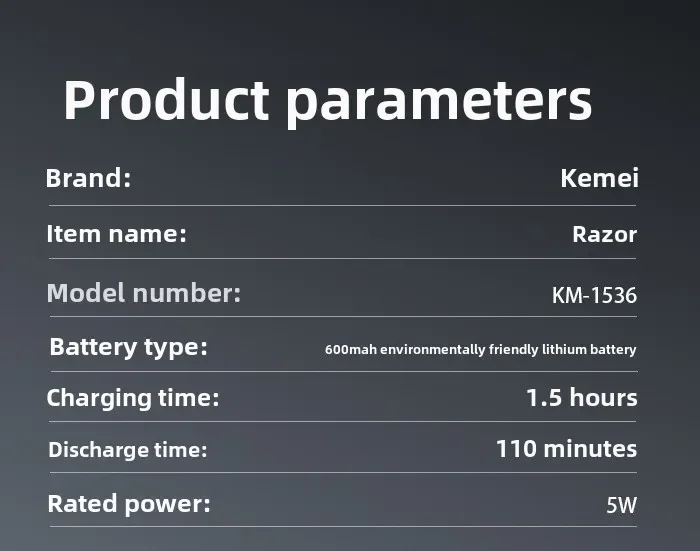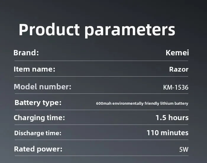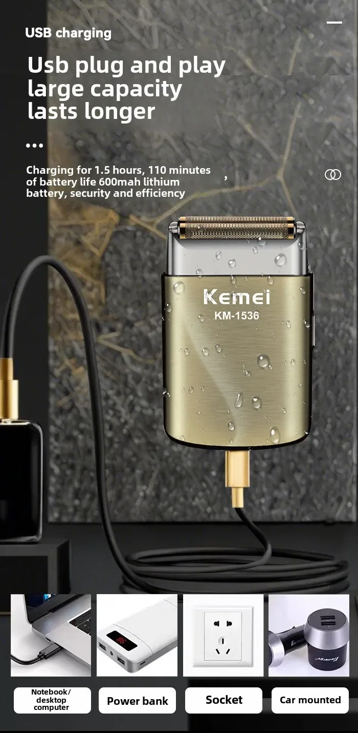 Function: Wet shave,Dry shaving,Washing knives under water,fast charging,Charging indication