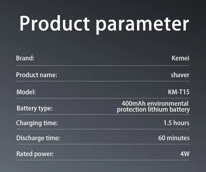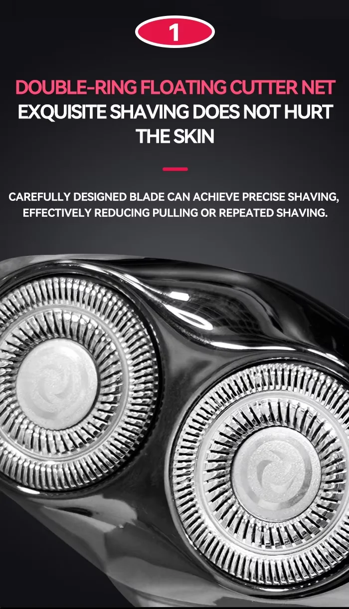 Function: Wet shave,Dry shaving,Washing knives under water,fast charging,Charging indication