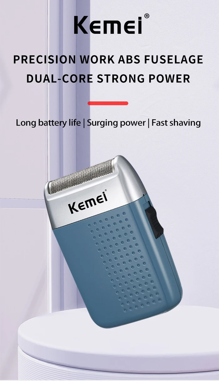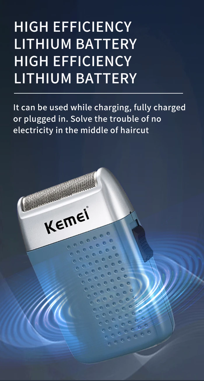 Kemei Mobile Shaver is a cordless shaver with a compact size and light weight . Perfect for traveling. The Mobile Shaver has a LED charging indicator and an operating time of 60 minutes. With a soft-touch housing for more grip, precision and control.