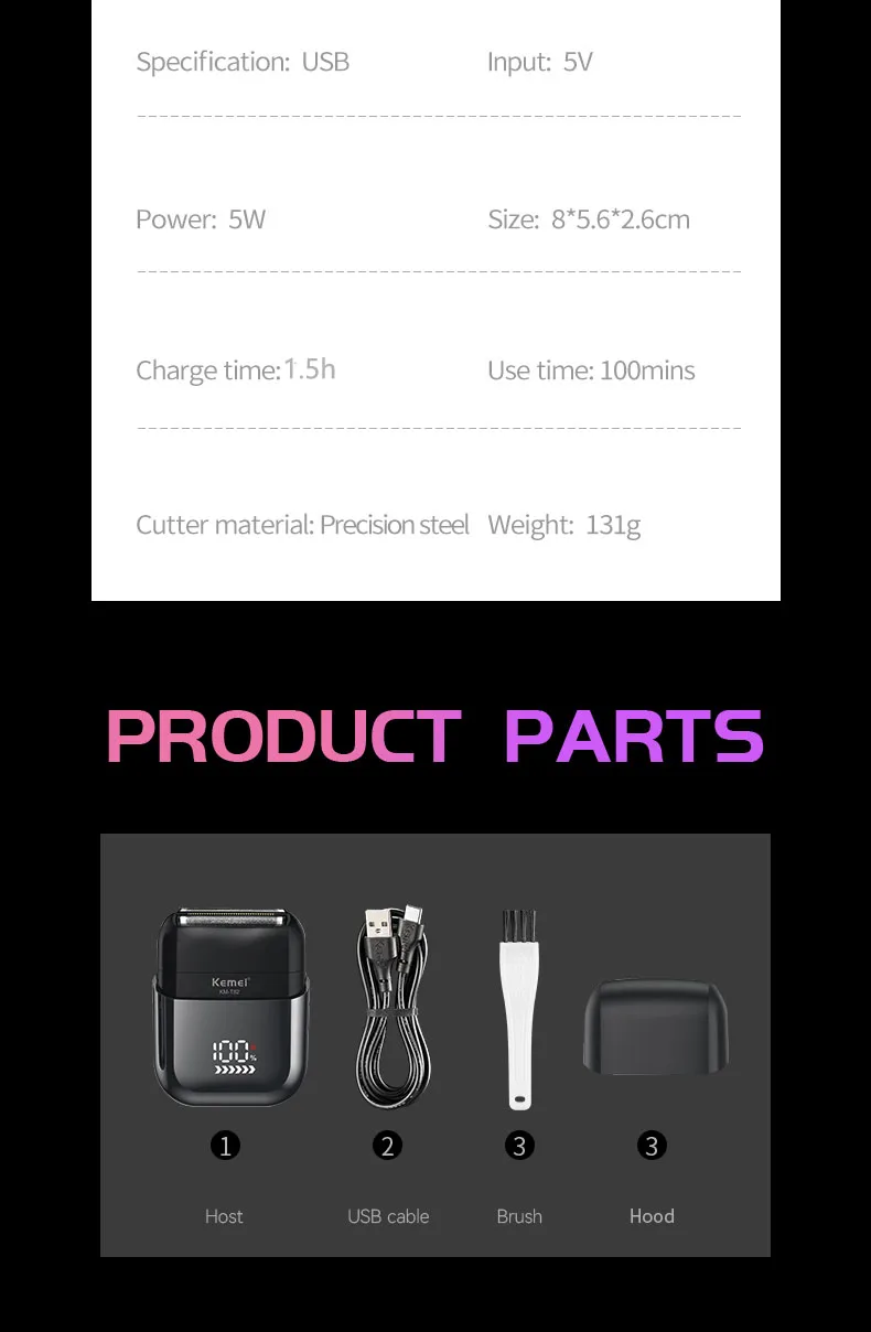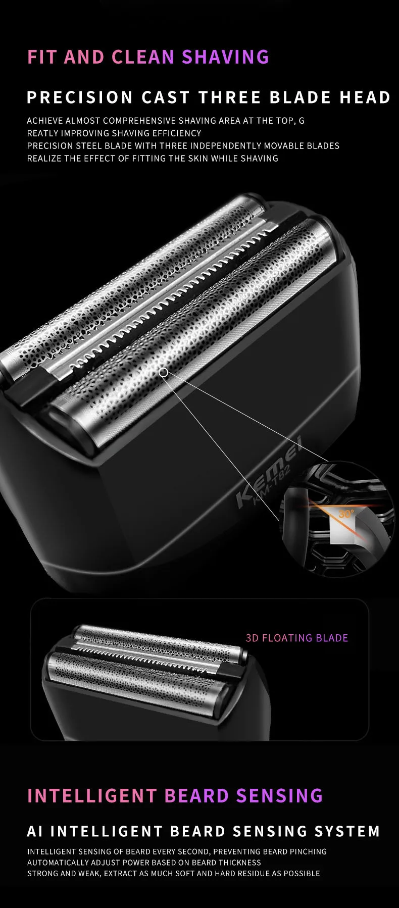 Function: floating head,Wet shave,Dry shaving,Automatic cleaning,Washing knives under water,fast charging,Charging indication