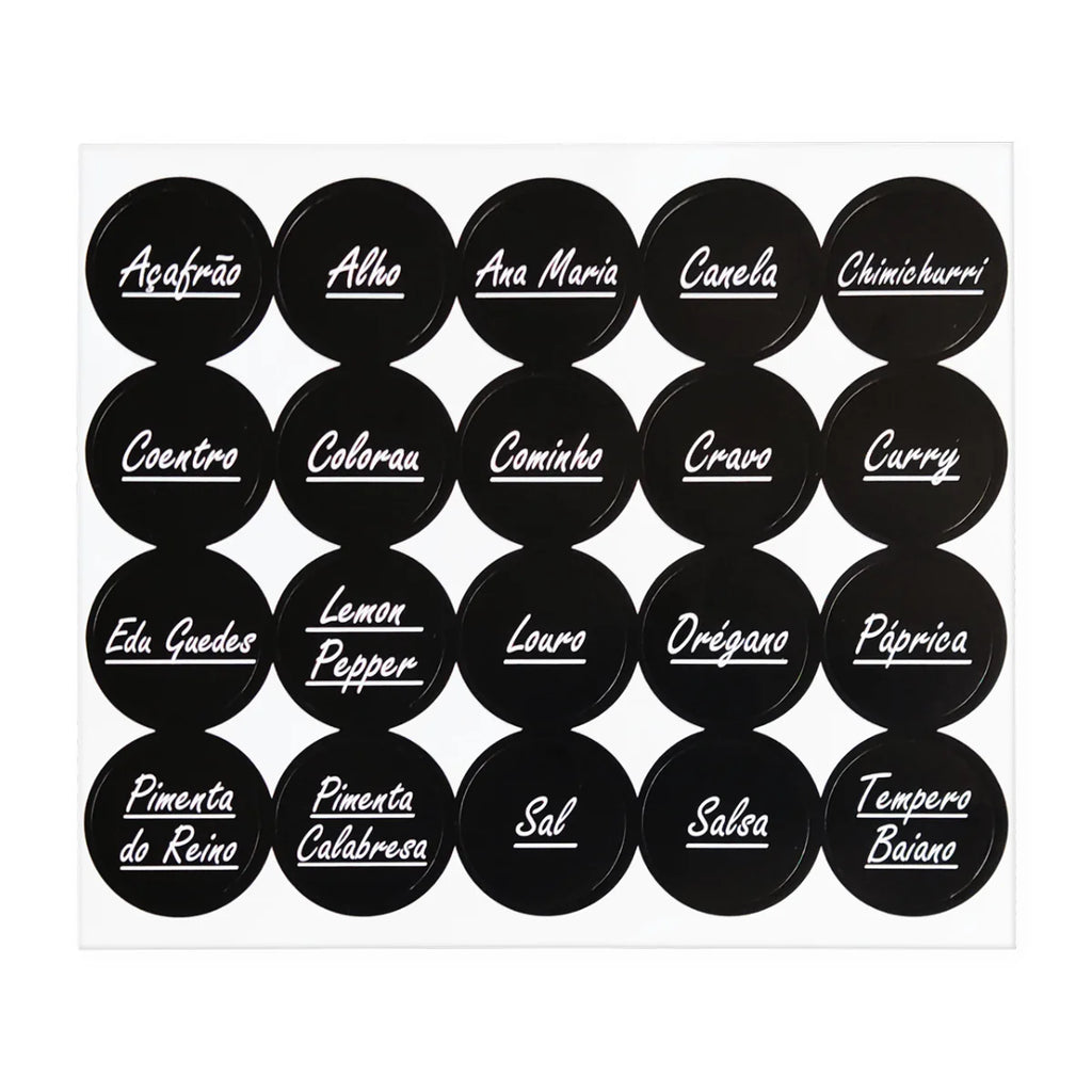 • Impeccable organization: keep your seasonings always at hand and easily Identifiable with the sticker tags that accompany the kit. • Easy to clean and maintain: the pots can be washed with cold water and Neutral detergent, ensuring hygiene and practicality. • Perfect gift for culinary enthusiasts and food lovers Organization. Technical Sheet: