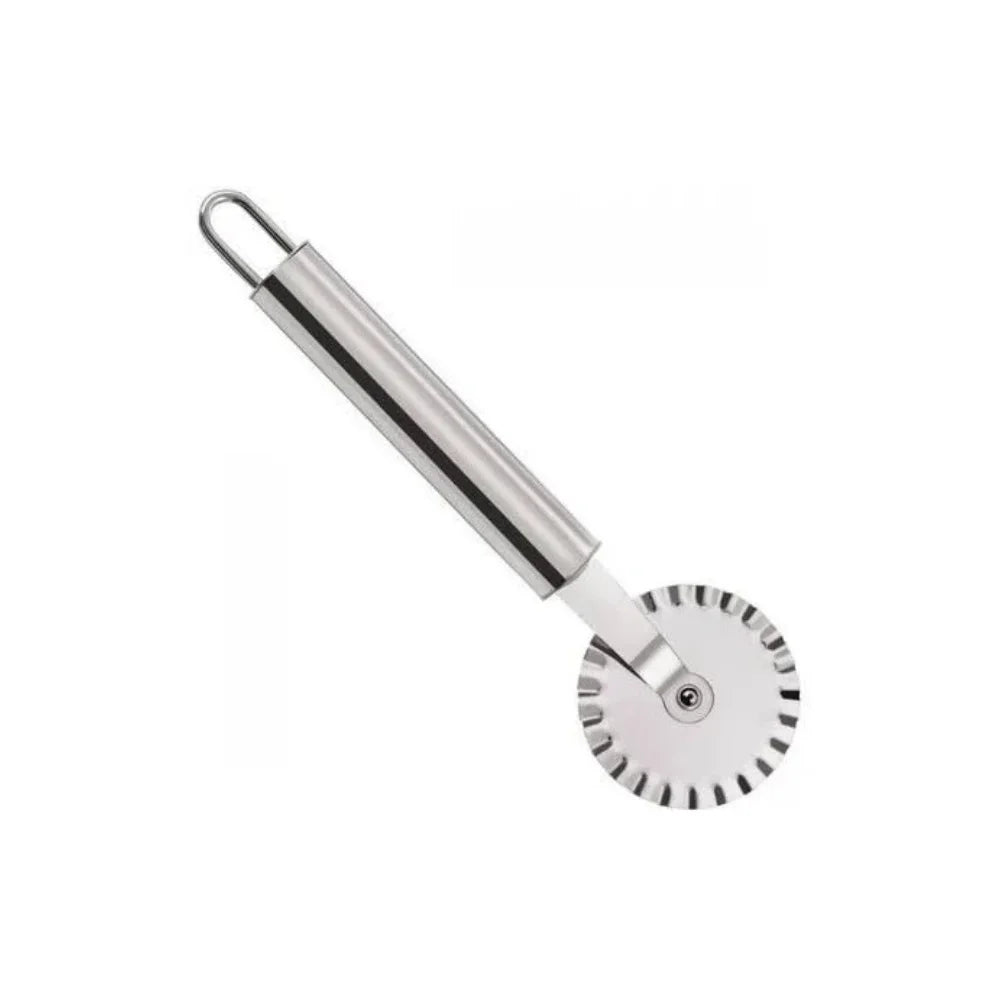 Kitchen utensils made of stainless steel include fork, ladle, skimmer and spatula.