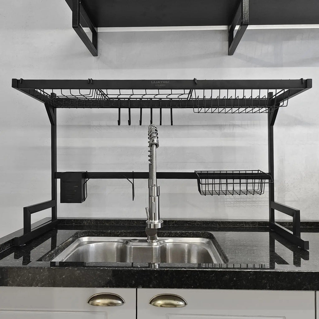 Dish Drainer Kitchen Rack Stainless Steel Organizer Sink Paint Anti-Rust-65 or 85 cm
