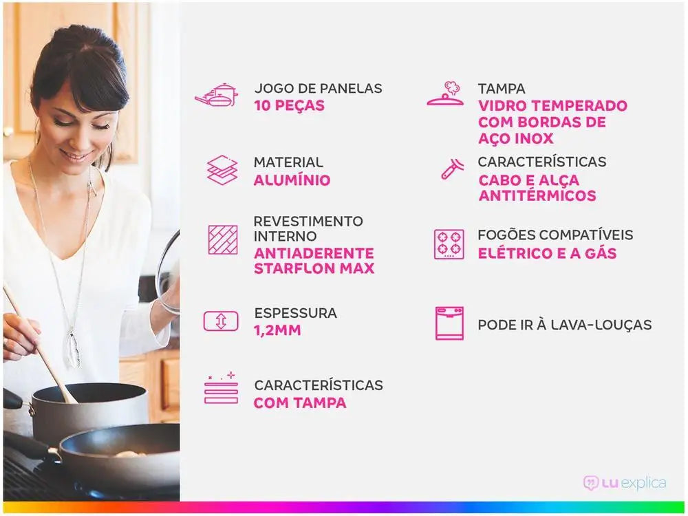 The Tramontina Red Turin 10 Pieces Cookware Set has all the utensils you need in your kitchen for the preparation of the most varied recipes. All parts are made of aluminum with Starflon Max non-stick internal coating, two features that ensure fast and uniform cooking of food, prevent them from sticking to the surface and make them more durable. The handles are in anti-thermal Bakelite and reduce the spread of heat and provide a comfortable and safe handling. The 2 pans and the casserole come with lids in tempered glass with edges of stainless steel. Apart from all this, the game can be taken to the dishwasher and even accompanies nylon utensils that do not damage the non-stick parts and are perfect for both the time to prepare or serve your recipes! Make delivery of the set: 2 frying pans, 2 pots, 1 casserole, 1 Pan, 1 boiling, 1 ladle, 1 spoon to serve and 1 spatula.
