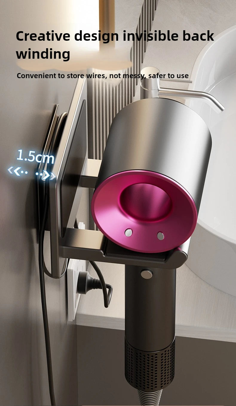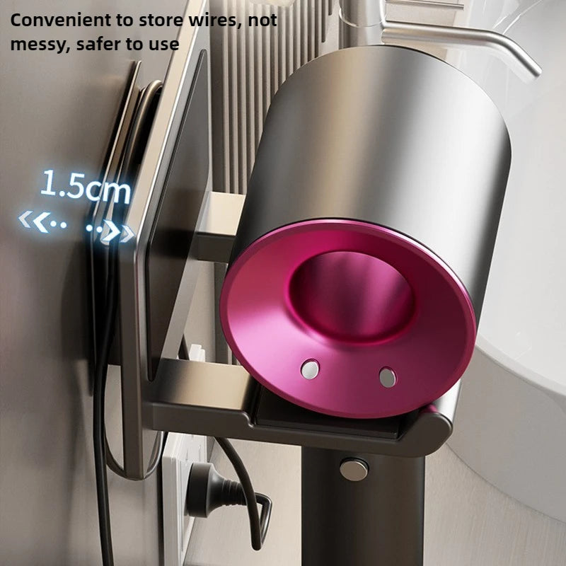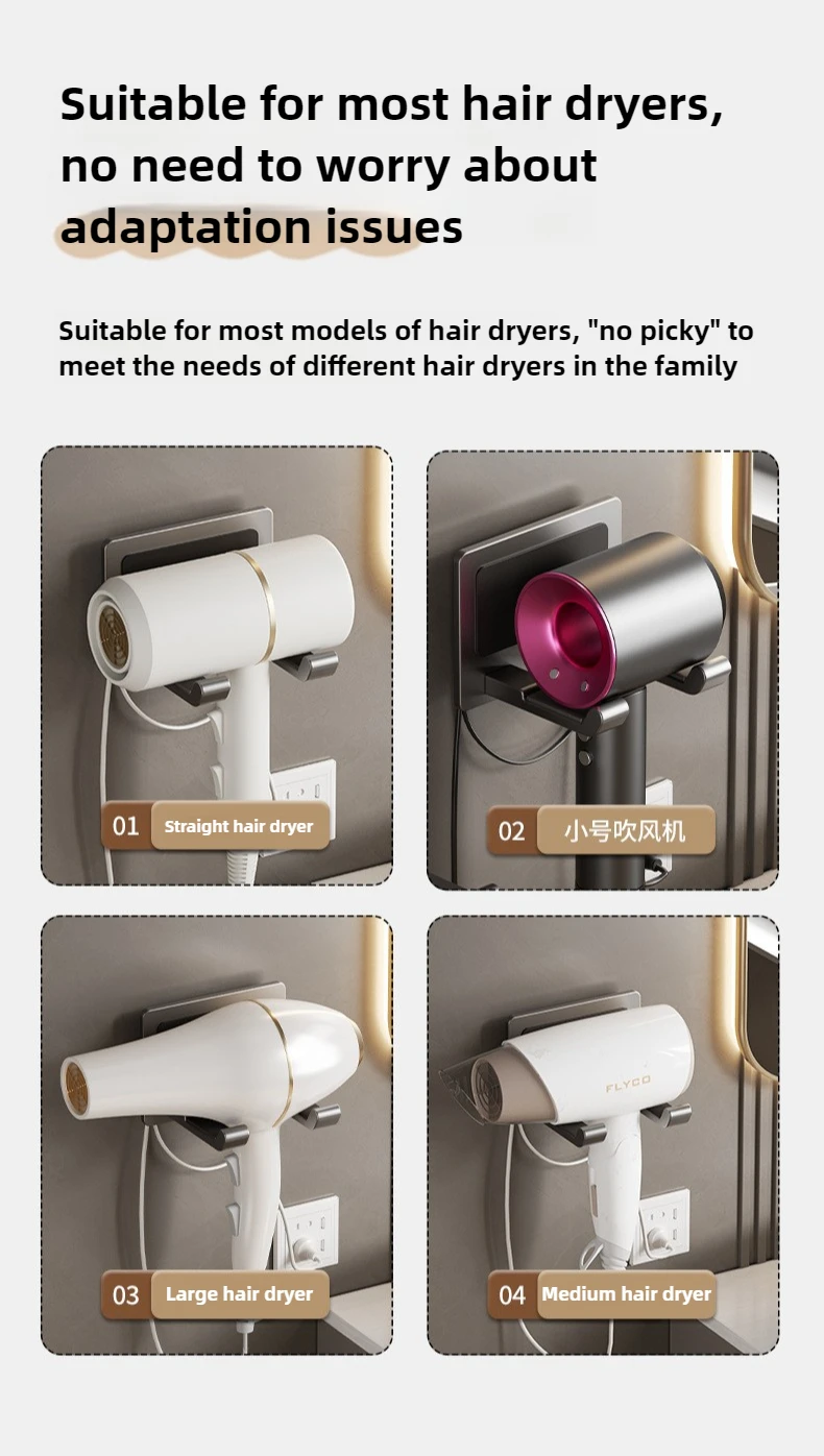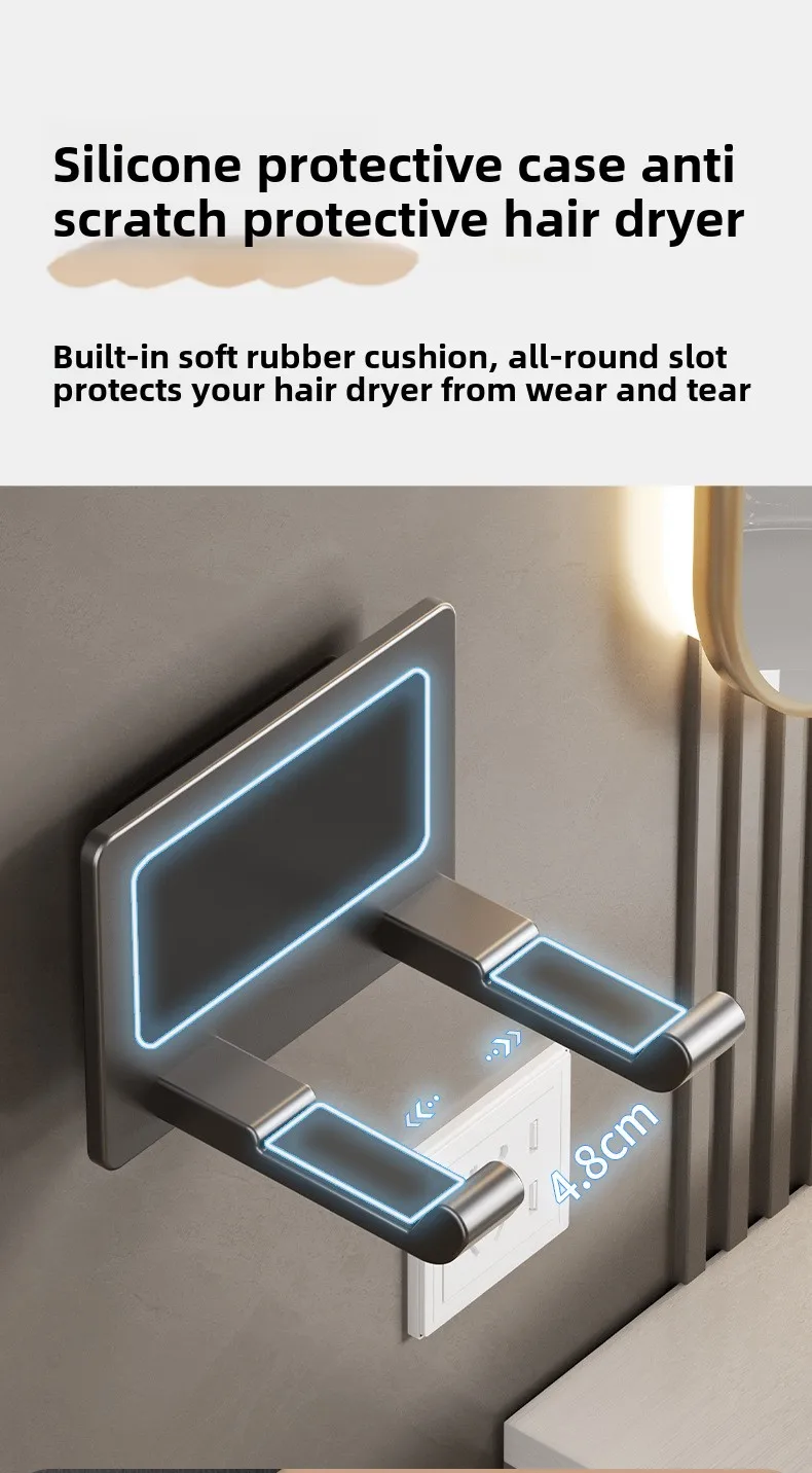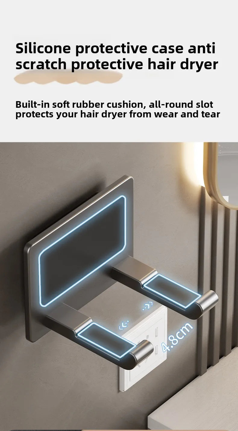 Wall Mounted Hair Dryer Holder Compatible Metal Organizer with Non-Slip Pad, Accessory Organizer for Bedroom Bathroom Shelves