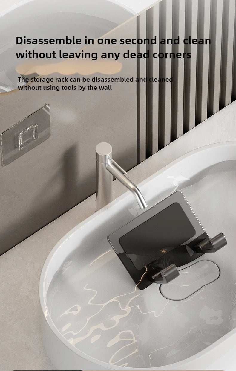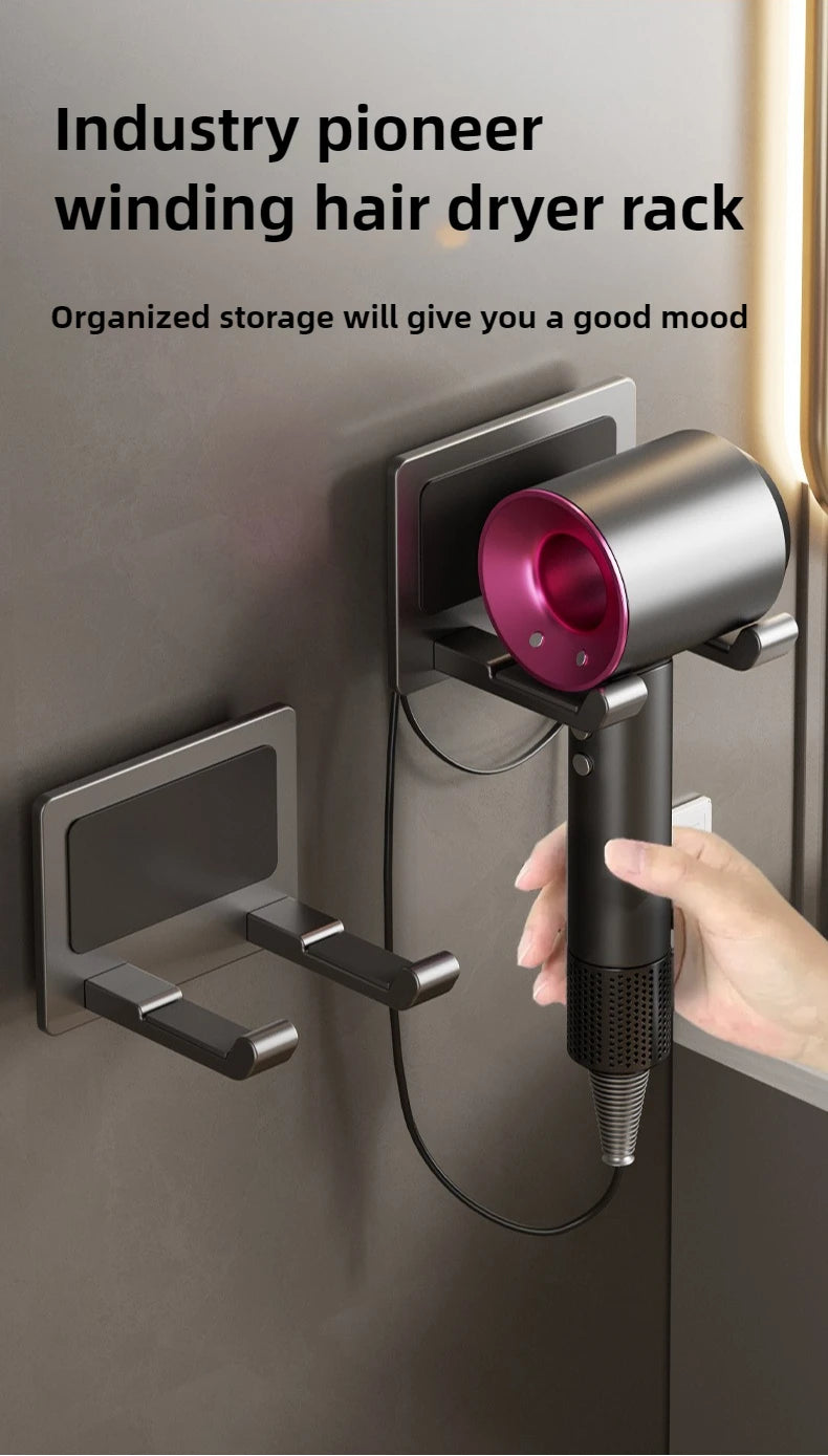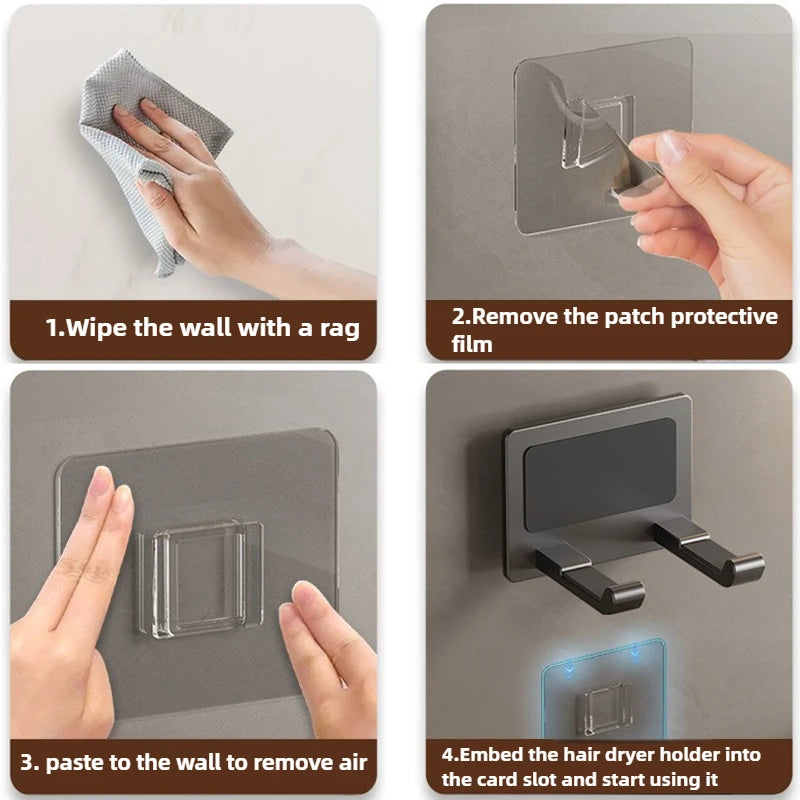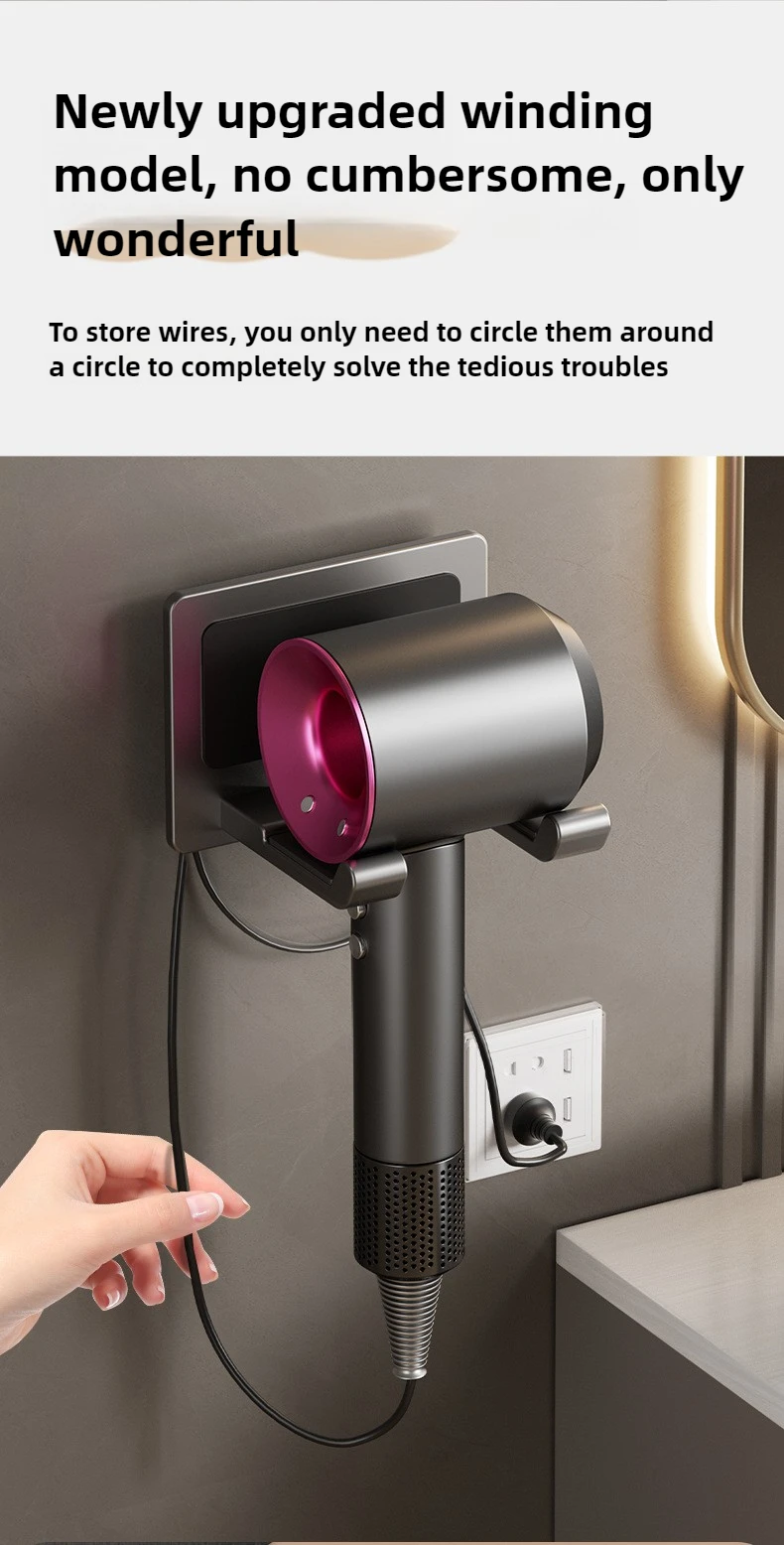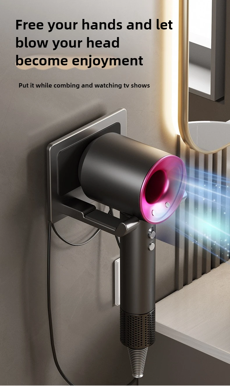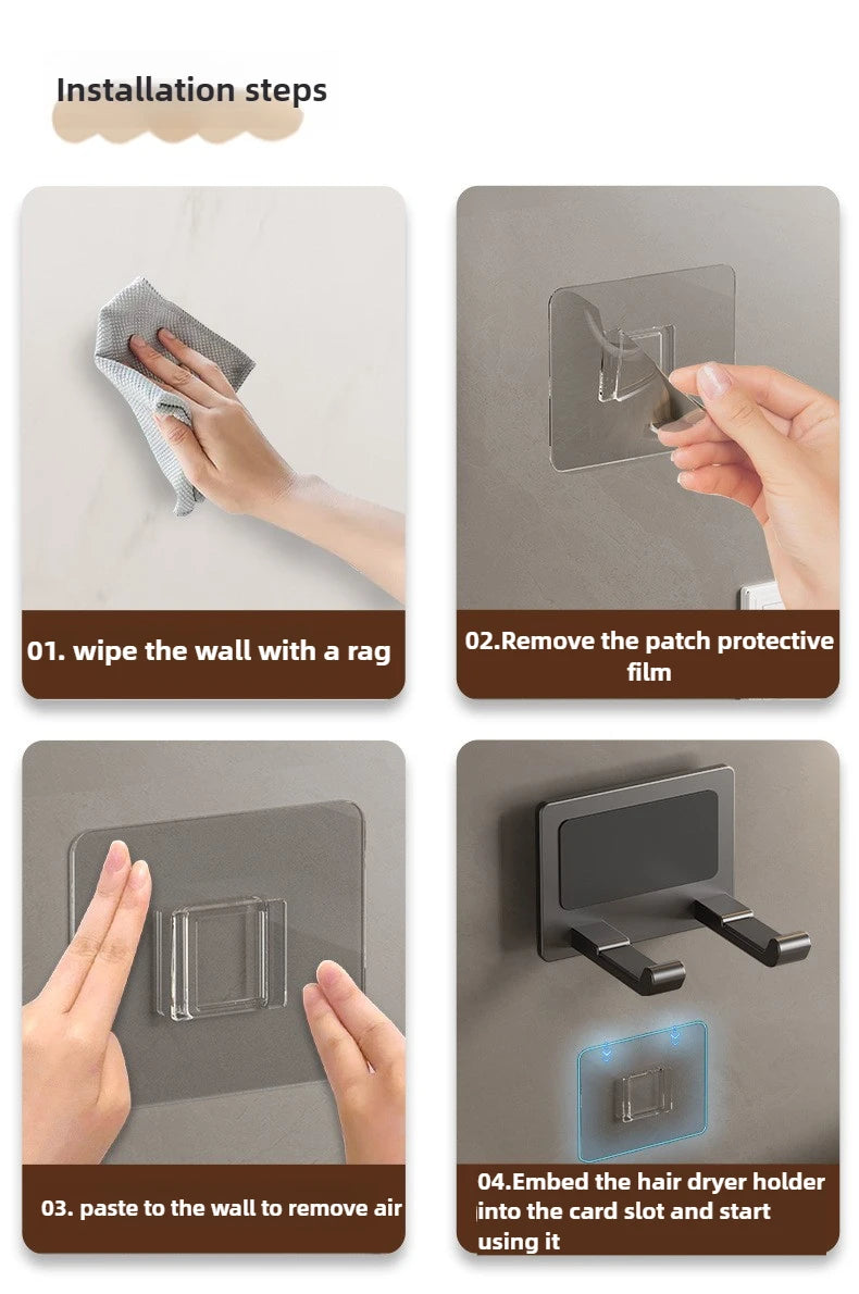 Wall Mounted Hair Dryer Holder Compatible Metal Organizer with Non-Slip Pad, Accessory Organizer for Bedroom Bathroom Shelves